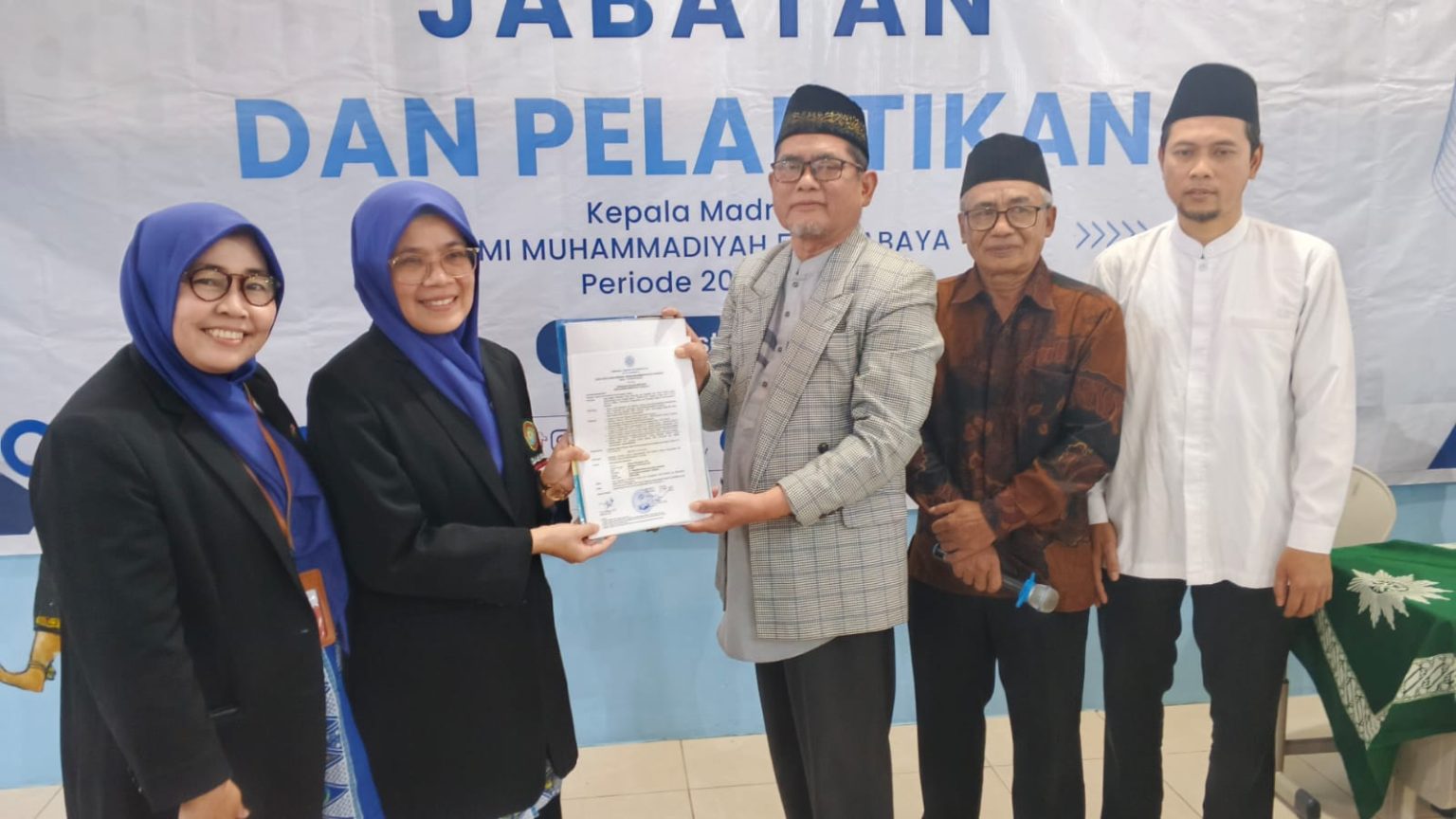 Surat Keputusan Kepala Sekolah dari PDM Surabaya yang dibacakan oleh Sugeng Purwanto menetapkan Nundun Nety Sufyan SPd sebagai Kepala MI Muhammadiyah 5 Surabaya, menggantikan Umi Syarofah MPd yang telah memimpin madrasah ini selama dua periode.