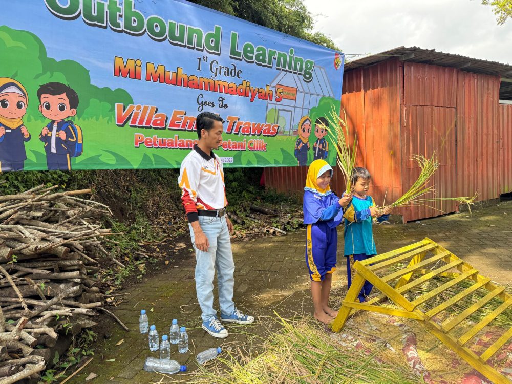 Siswa kelas 1 Sekolah Mulia, sebutan dari MI Muhammadiyah 5 Surabaya mengikuti kegiatan outbound menginap selama dua hari di Vila Emak, Trawas, Mojokerto, Selasa-Rabu (21-22/10/2025).